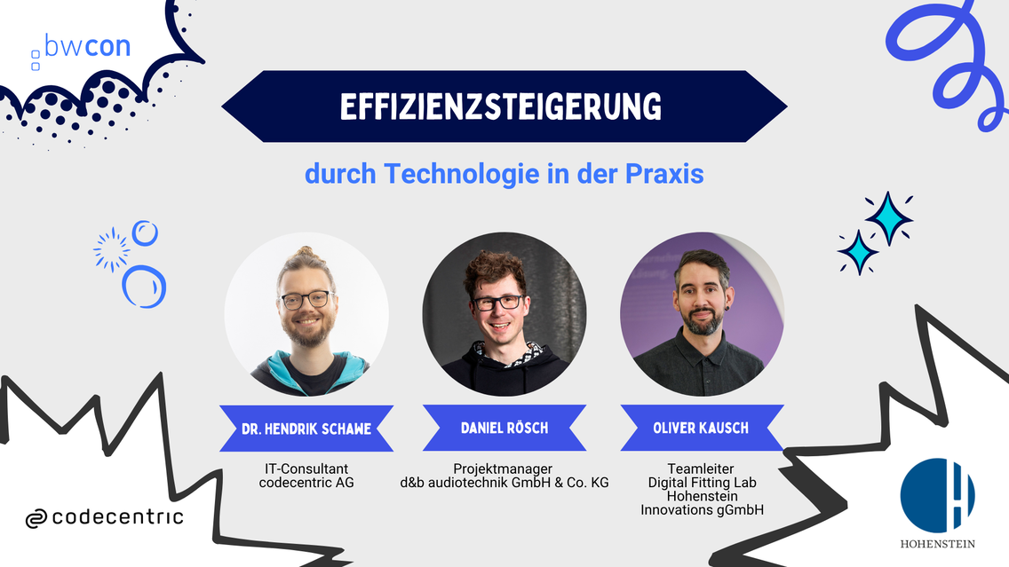 Heute geht es um die Session “Effizienzsteigerung durch Technologie in der Praxis”, die sich unsere Sponsoren codecentric und Hohenstein thematisch teilen. Während codecentric ein Praxisbeispiel mit seinem Kunden d&b audiotechnik vorstellt und erklärt, wie ein passgenauer Algorithmus zu mehr Effizienz verhilft, geht es bei Hohenstein darum, wie digitale Zwillinge die Bekleidungsentwicklung transformieren.